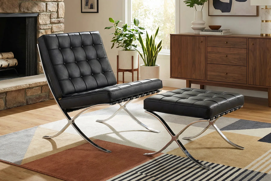 専用の「バルセロナオットマン」との組み合わせが、究極のくつろぎ空間を創出。